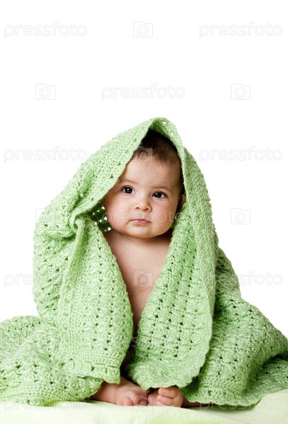 Милый ребенок в зеленом одеяле