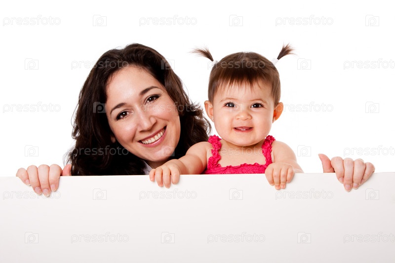 Дочь с матерью и пустым баннером