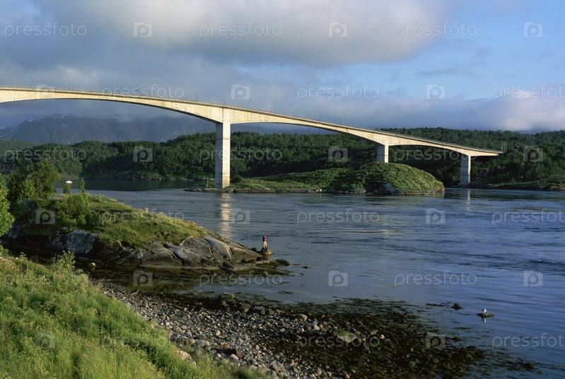 Мост через реку, закат, Норвегия