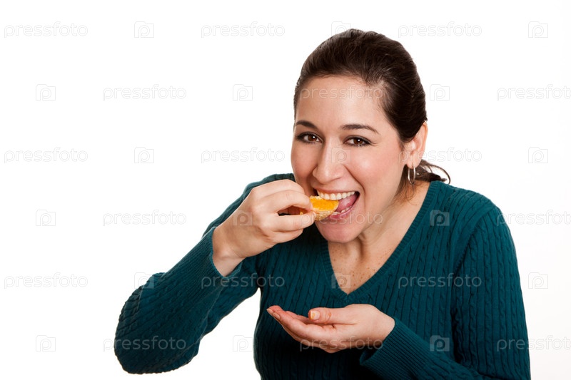 Женщина ест сочный мандарин