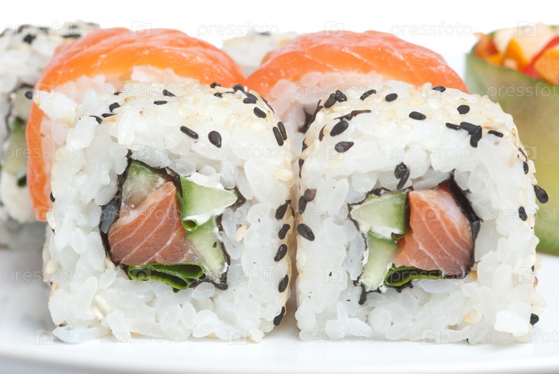 Японские роллы на белом фоне
