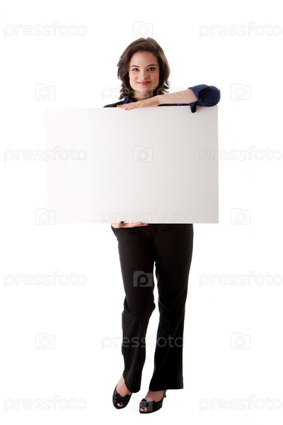 Молодая бизнес-леди с белым баннером