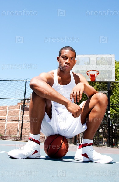 Баскетболист сидит на мяче
