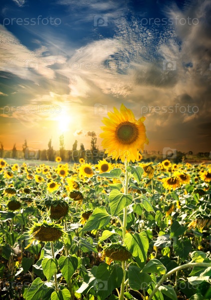 Закат над подсолнухами