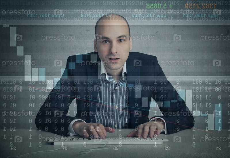 Мужчина, работающий на компьютере