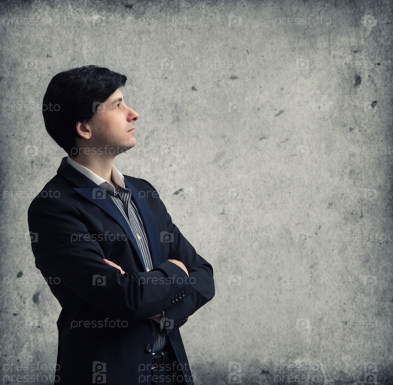 Мужчина на фоне серой стены