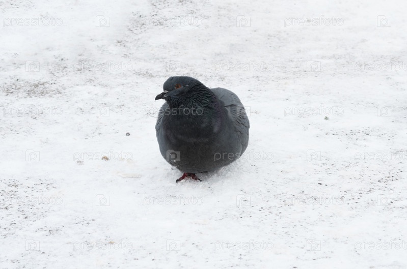 Голубь на снегу