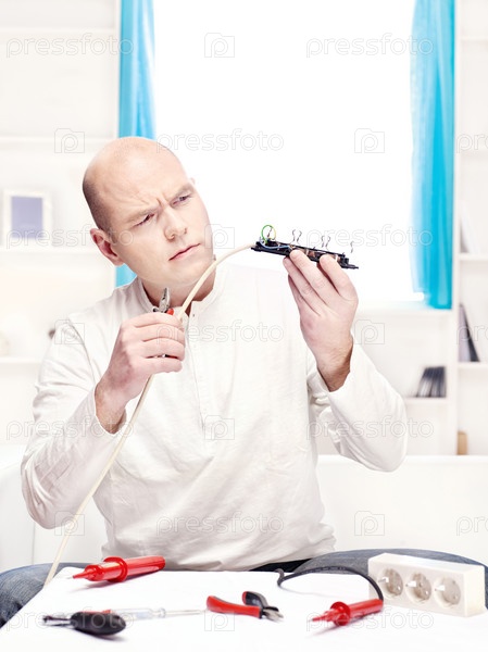 Мужчина ремонтирует удлинитель