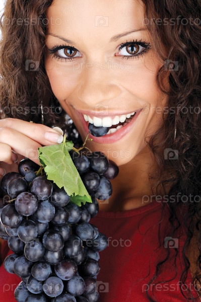 Симпатичная женщина ест виноград