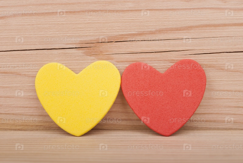 Два сердечка на деревянном фоне
