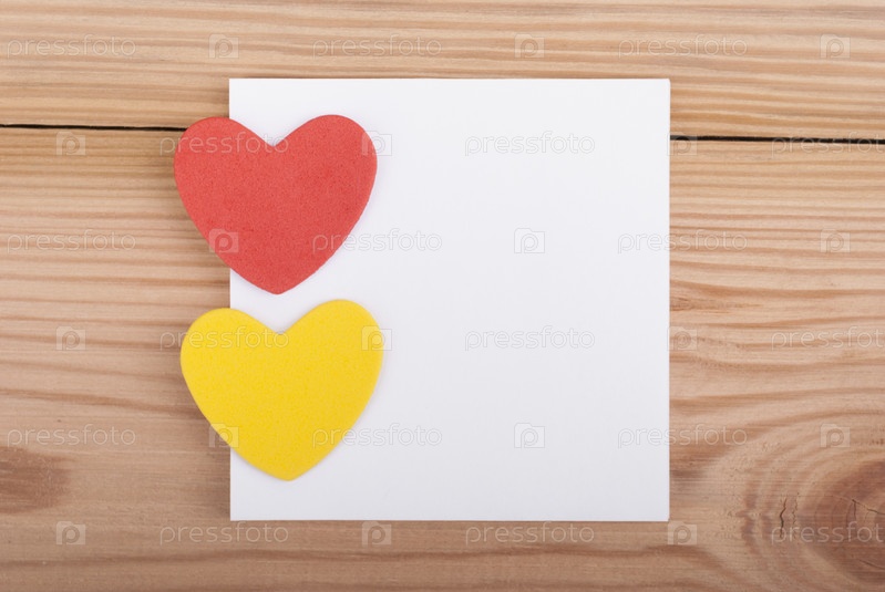 Два сердечка и бумага на деревянном фоне
