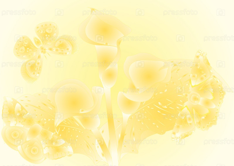 Желтый фон с бабочками и цветами