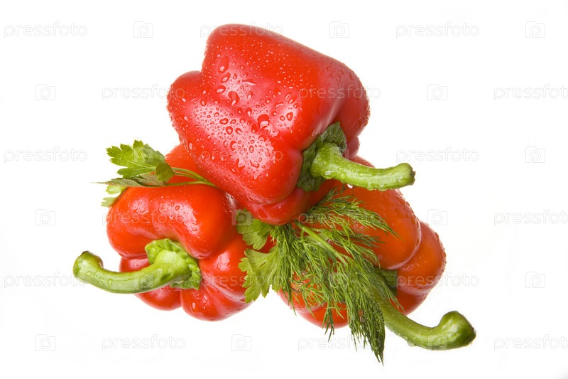 Три сладких болгарских перца и зелень петрушки и укропа