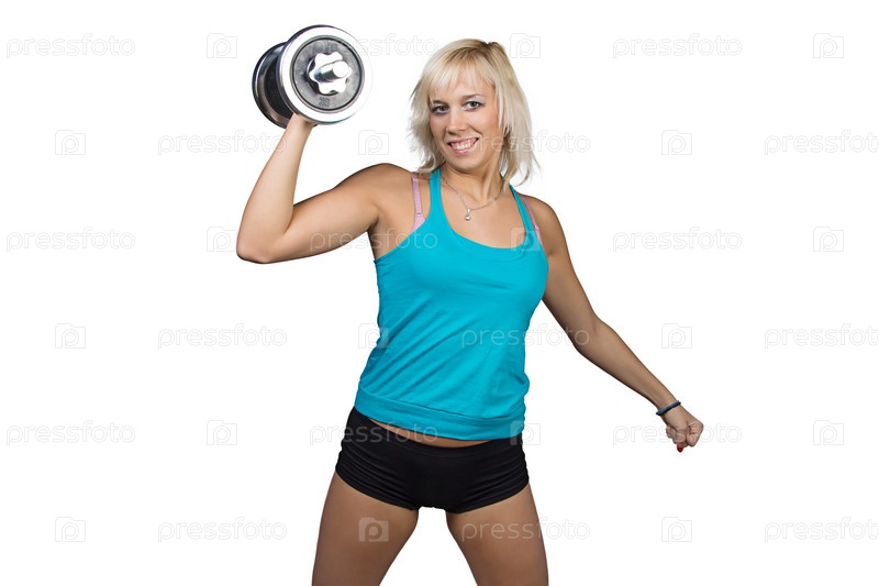 Девушка делает упражнения с гантелями
