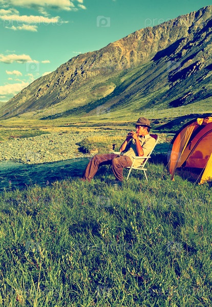 Турист в лагере