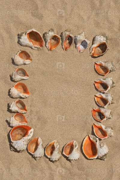 Рамка из морских раковин на песке