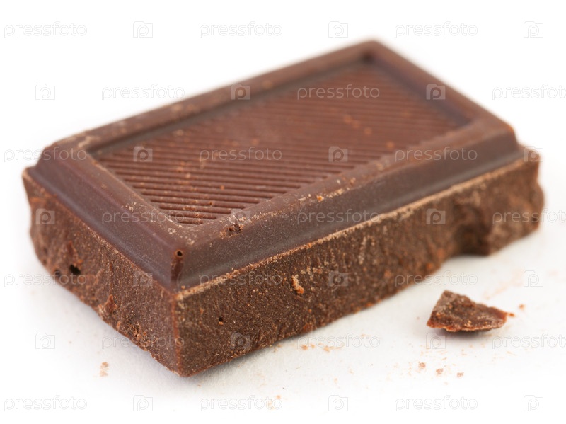 Кусочек горького шоколада на белом фоне