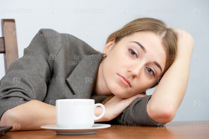 Усталая деловая леди отдыхает за чашкой кофе