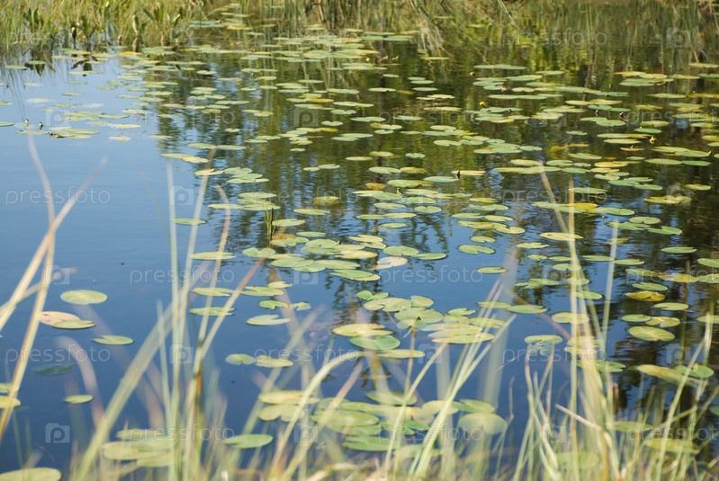Поверхность пруда, покрытая кувшинками