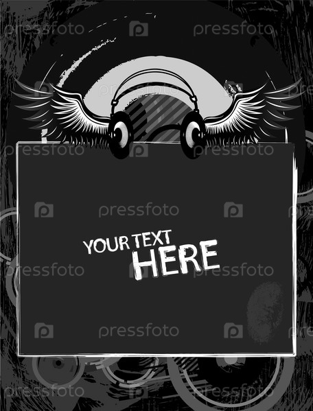 Наушники с крыльями, рамка для текста