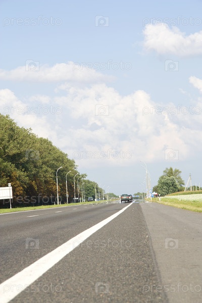 Шоссе с дорожной разметкой и машиной