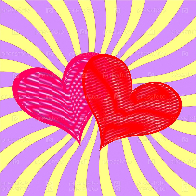 Два сердца на полосатом фоне