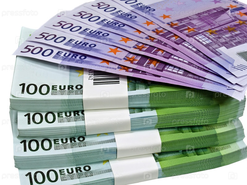 Евробанкноты в пачках