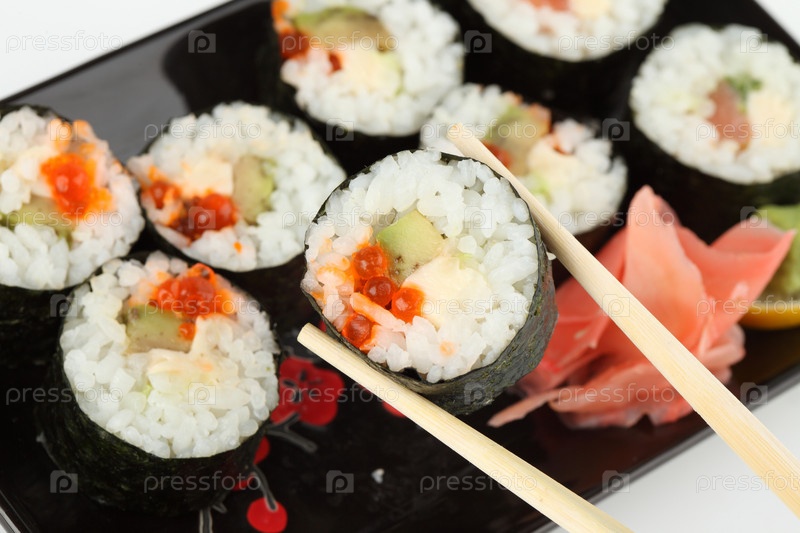 Роллы с красной икрой и палочки