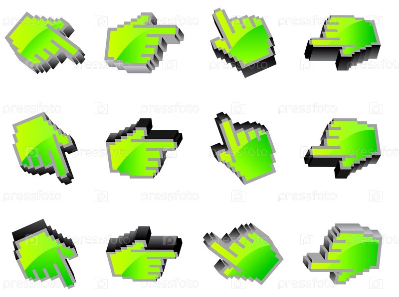 Векторные зеленые курсоры на белом фоне