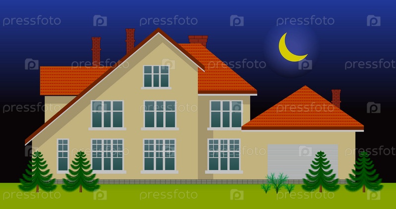Современный коттедж в ночное время