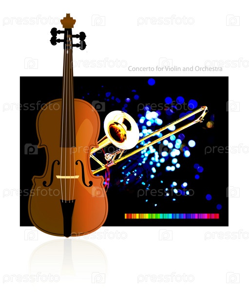 Векторное изображение скрипки и трубы на ярком фоне
