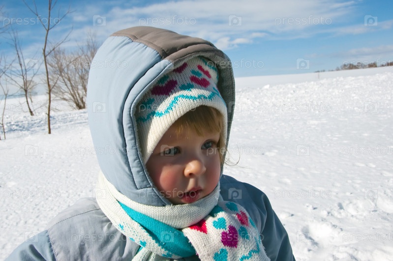 Маленький ребенок зимой на улице
