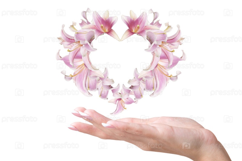 Женские руки и сердечко из бутонов розовой лилии