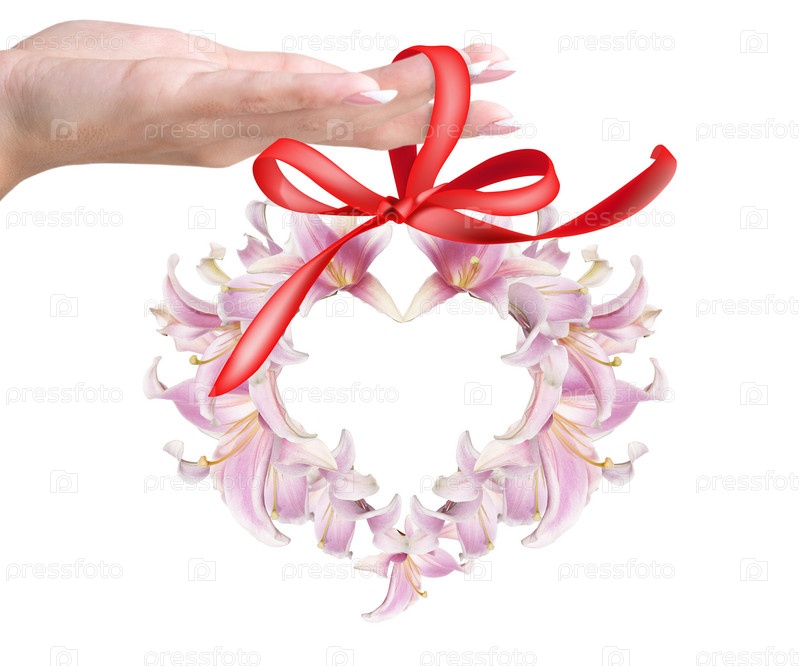 Женские руки и сердечко из бутонов розовой лилии