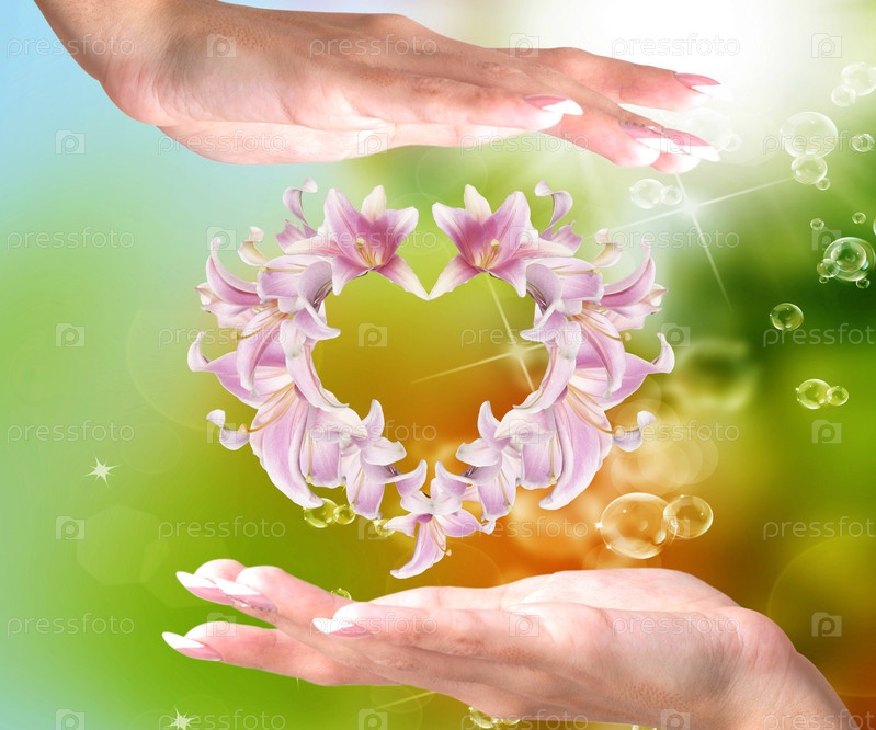 Женские руки и сердечко из бутонов розовой лилии