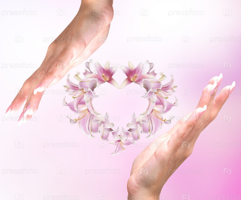 Женские руки и сердечко из бутонов розовой лилии