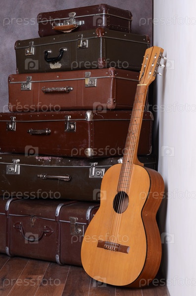 Старые чемоданы у стены