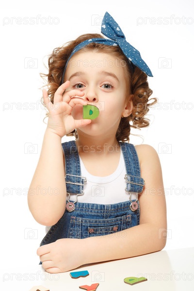 Девочка играет с алфавитом