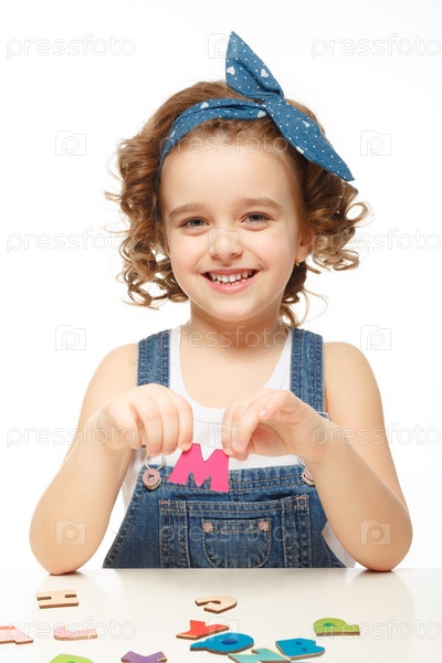 Девочка играет с алфавитом