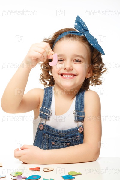 Девочка играет с алфавитом