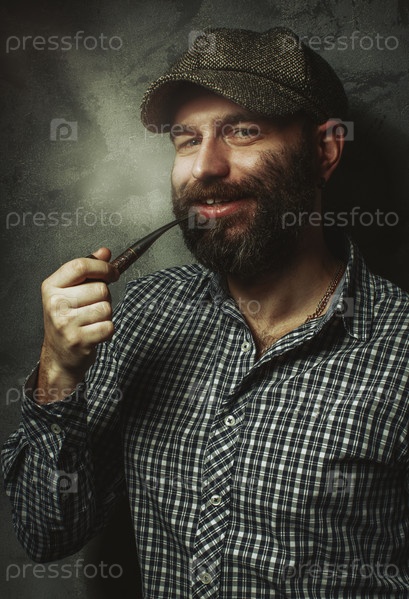 Мужчина с бородой курит трубку