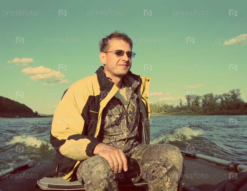 Рыбак на лодке с мотором