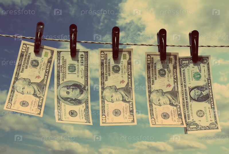 Бумажные доллары сушатся на веревке