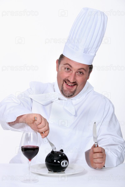 Повар с пластиковой свиньей