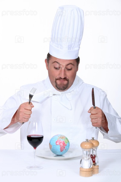Шеф-повар ест глобус