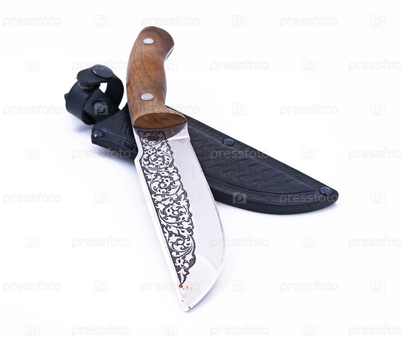 Нож и чехол на белом фоне