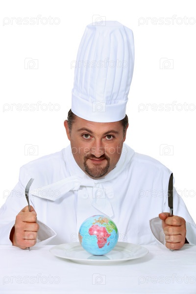 Шеф-повар ест глобус