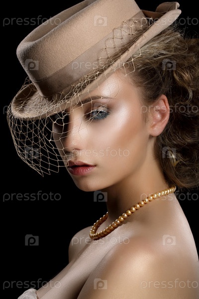 Романтическая женщина в шляпе с вуалью