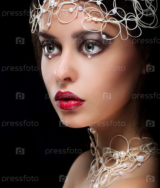 Модная молодая женщина с жемчугом