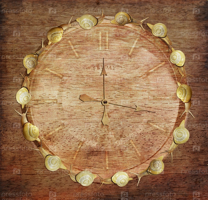 Часы с улитками на деревянном фоне